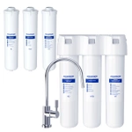 Zestaw w skład, którego wchodzi filtr wody pod zlew Aquaphor Kryształ B ECO z zestawem dodatkowych wkładów filtrujących. Komplet ten umożliwia filtrację przez 12 miesięcy, każdy zestaw filtrów wystarczy natomiast na 6 miesięcy.