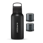 LifeStraw Go 2.0 Czarna stalowa butelka filtrująca 1L z dodatkowymi wkładami