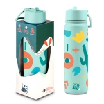 Średniej wielkości butelka na wodę Brosky Pattern w kolorze miętowym z wygodnym zamykanym ustnikiem, słomką oraz zintegrowanym uchwytem. Stalowa butelka o pojemności 680 ml posiada podwójne ścianki i ceramiczne wnętrze gwarantujące izolację termiczną!