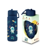 Stalowy bidon termiczny dla dzieci Brosky Kids w motyw kosmosu o pojemności 550 ml jest idealnym towarzyszem do przedszkola i szkoły! Butelka na wodę posiada wygodny ustnik ze słomką, odpowietrznik, podwójne ścianki oraz powłokę ceramiczną wewnątrz.