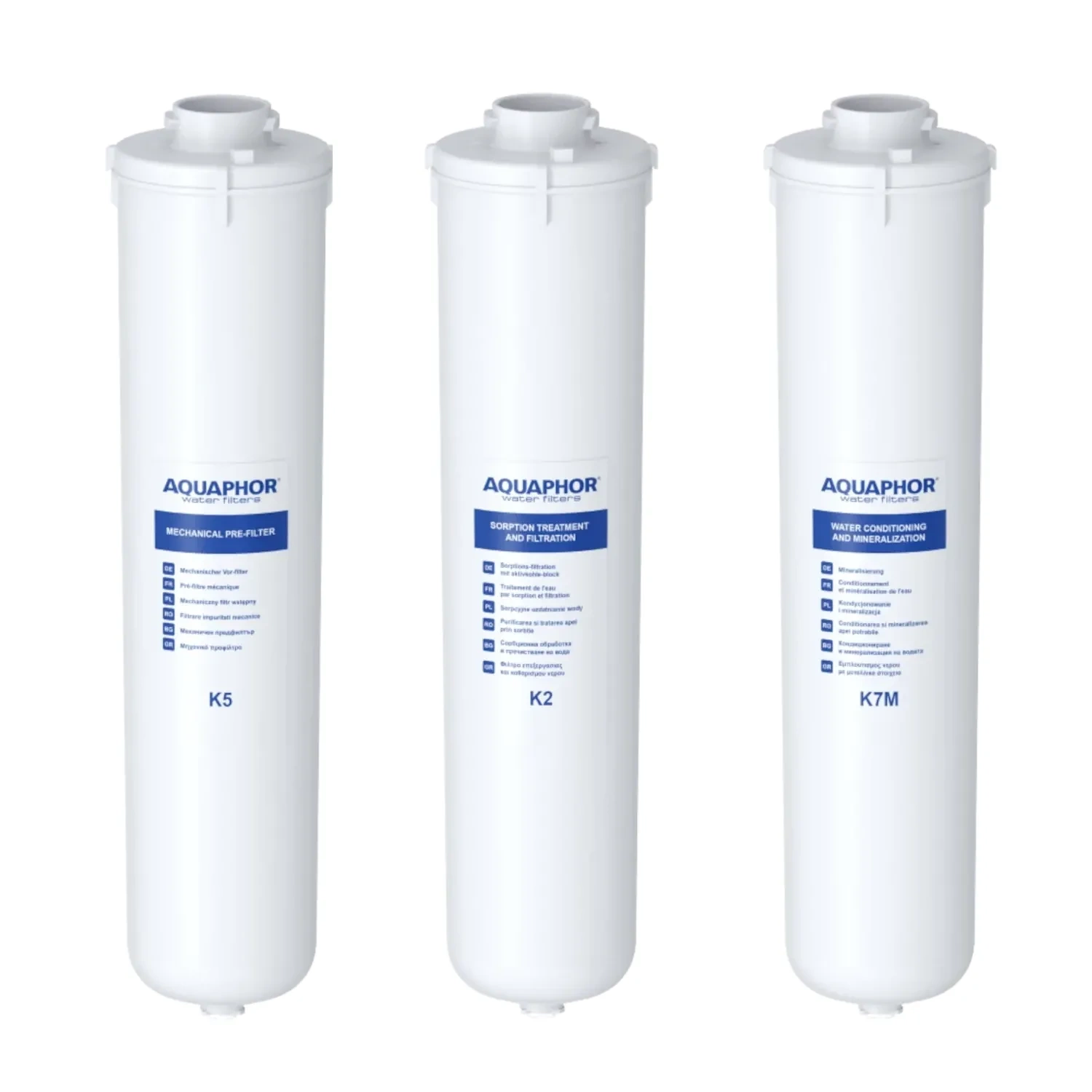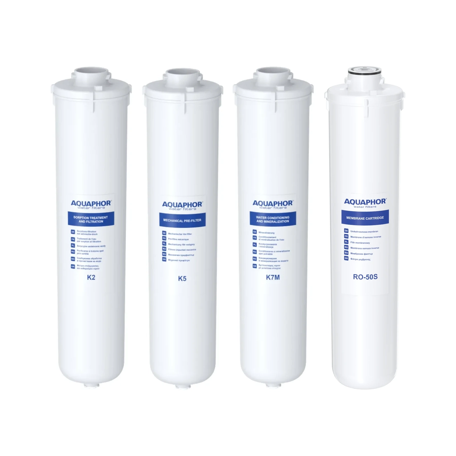 Duży serwis filtra Aquaphor Morion - Zestaw 4 wkładów filtrujących: K2, K5, K7M oraz membrana osmotyczna RO-50S do filtra Aquaphor Morion