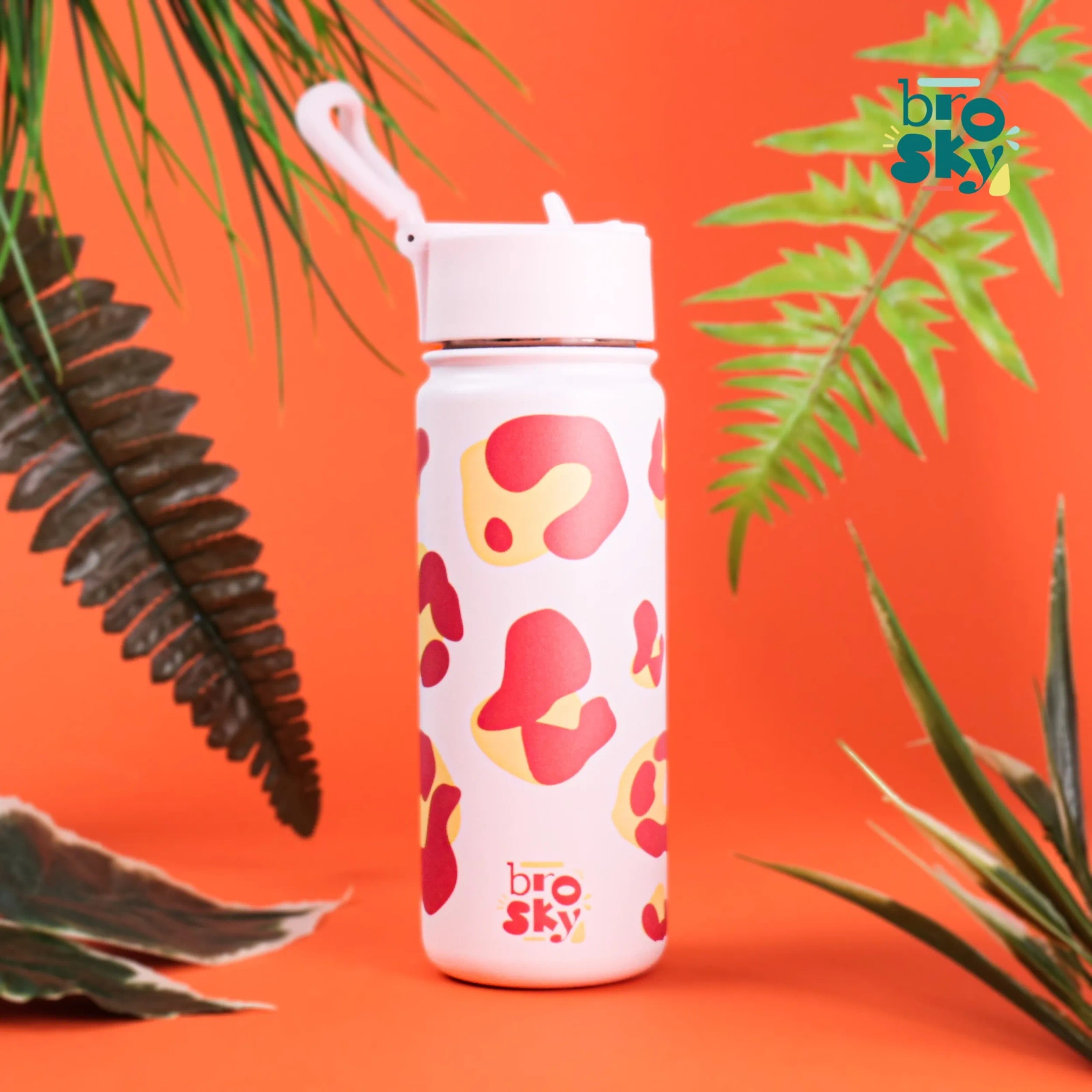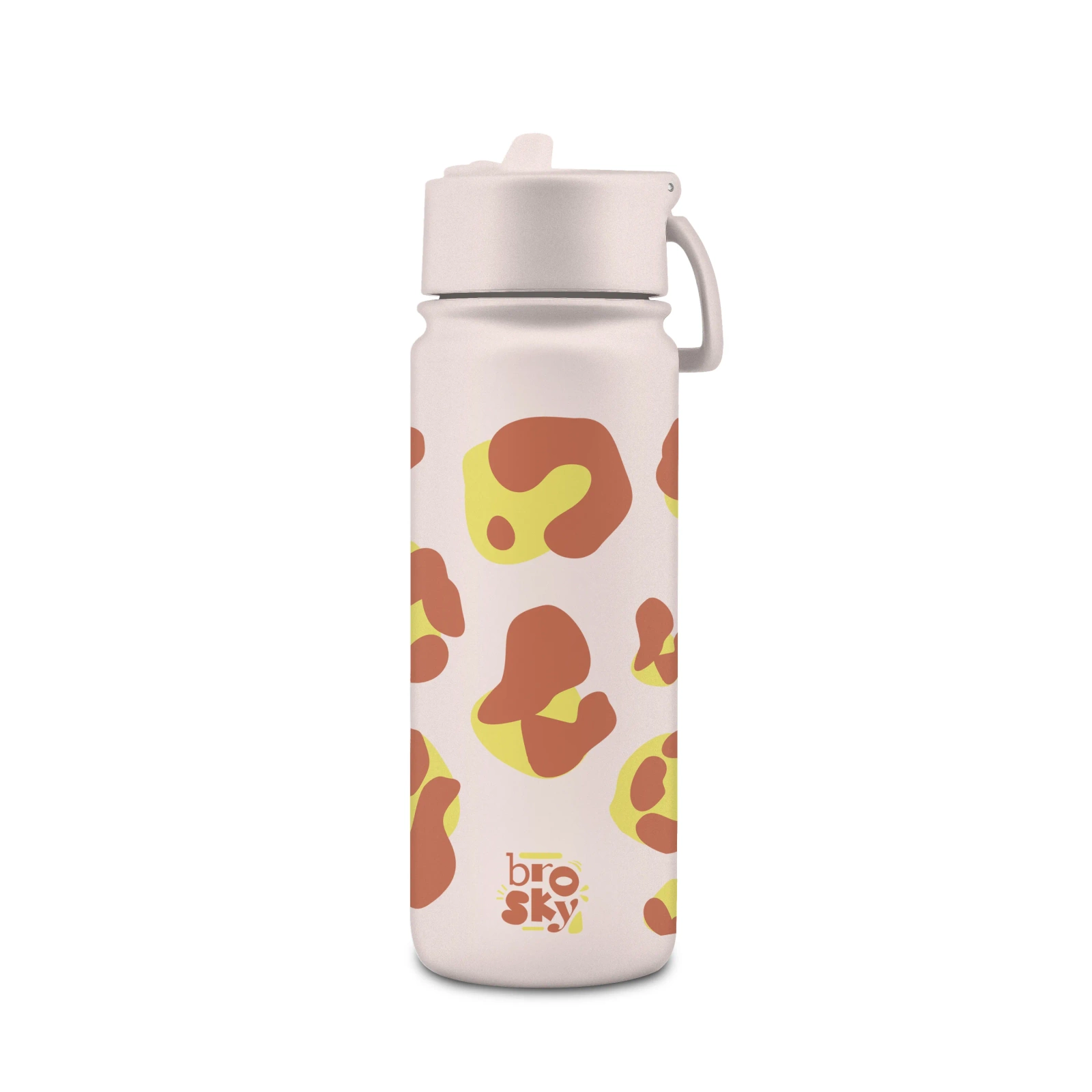 Różowy bidon ze słomką Brosky jest praktycznym i stylowym pojemnikiem na wodę, herbatę, lemoniadę lub ulubiony napój! Średniej wielkości butelka wyróżnia się nadrukiem nawiązującym do zwierzęcych cętek, niską wagą oraz optymalną wielkością. Metalowy bidon Brosky posiada podwójne ścianki, które pełnią funkcję izolacji termicznej, jego wnętrze wykończone jest bezpieczną powłoką ceramiczną chroniącą smak napojów. Dopełnieniem butelki jest funkcjonalna zakrętka z wyciąganym ustnikiem, odpowietrznikiem w wieczku, słomką ułatwiającą picie oraz ruchomy uchwyt umożliwiający transportowanie butelki w wygodny sposób!