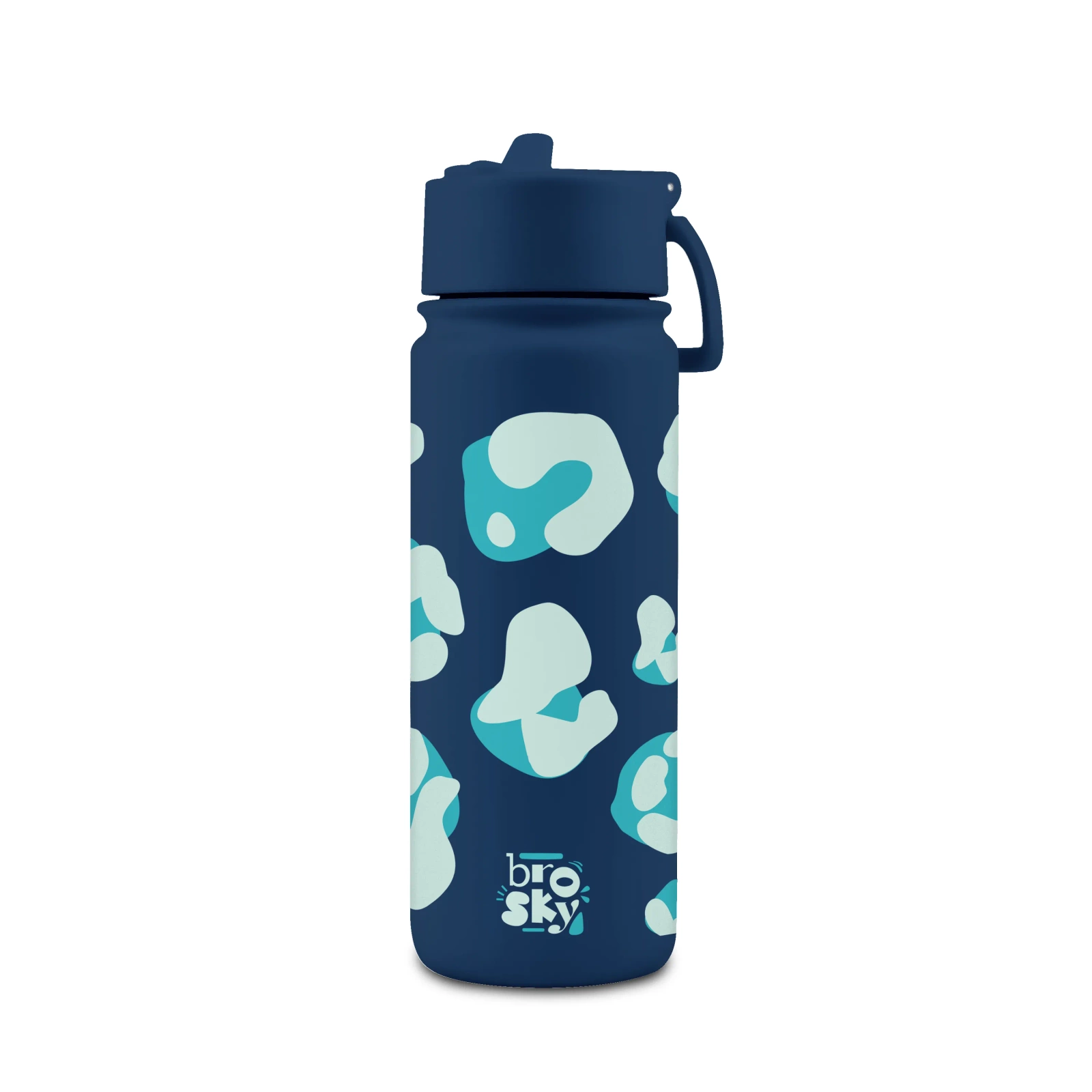 Ciemnoniebieska termiczna butelka na wodę ze słomką Brosky Wild 550 ml