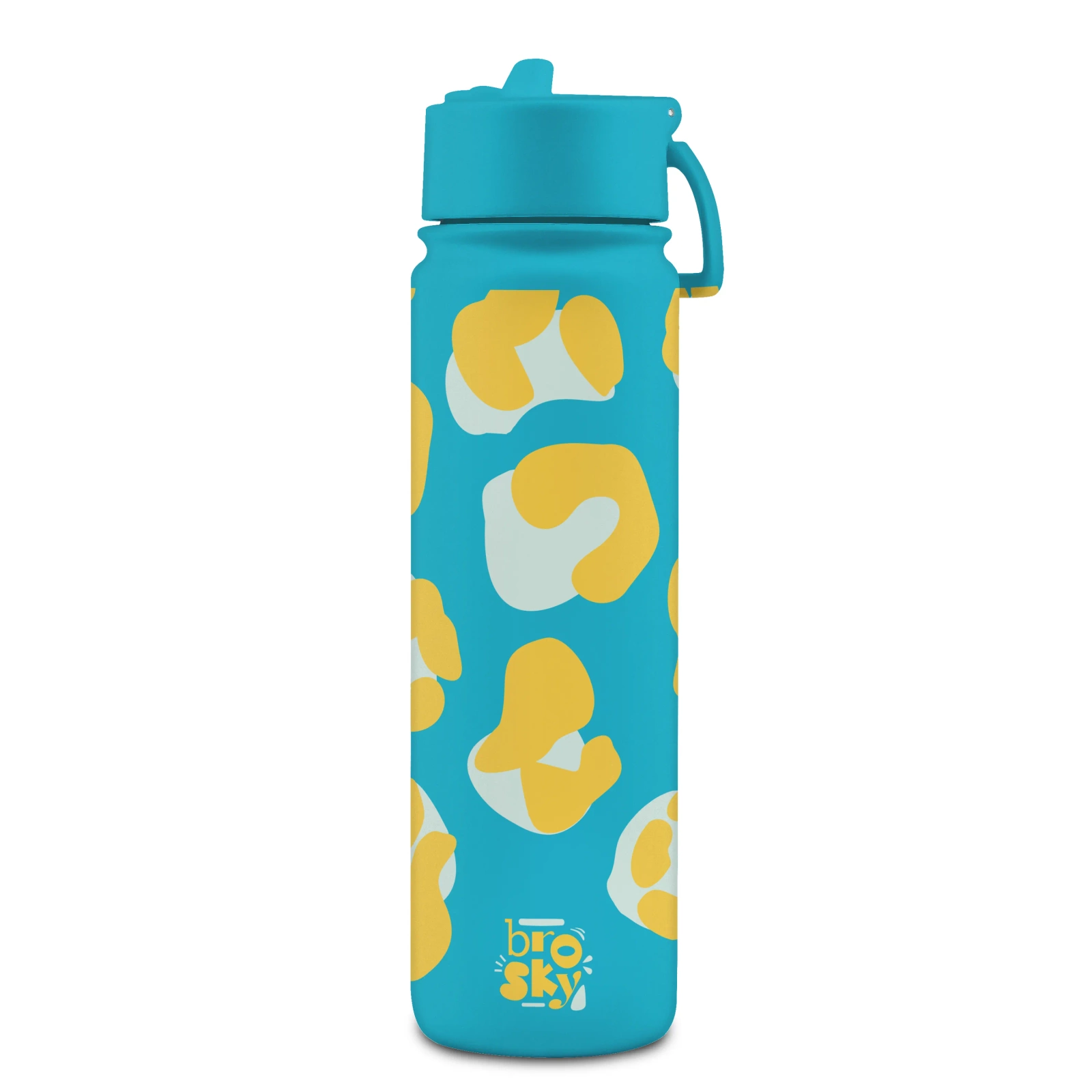Niebieski bidon ze słomką Brosky jest praktycznym i stylowym pojemnikiem na wodę, herbatę, lemoniadę lub ulubiony napój! Duża butelka wyróżnia się nadrukiem nawiązującym do zwierzęcych cętek, niską wagą oraz optymalną wielkością. Metalowy bidon Brosky posiada podwójne ścianki, które pełnią funkcję izolacji termicznej, jego wnętrze wykończone jest bezpieczną powłoką ceramiczną chroniącą smak napojów. Dopełnieniem butelki jest funkcjonalna zakrętka z wyciąganym ustnikiem, odpowietrznikiem w wieczku, słomką ułatwiającą picie oraz ruchomy uchwyt umożliwiający transportowanie butelki w wygodny sposób!