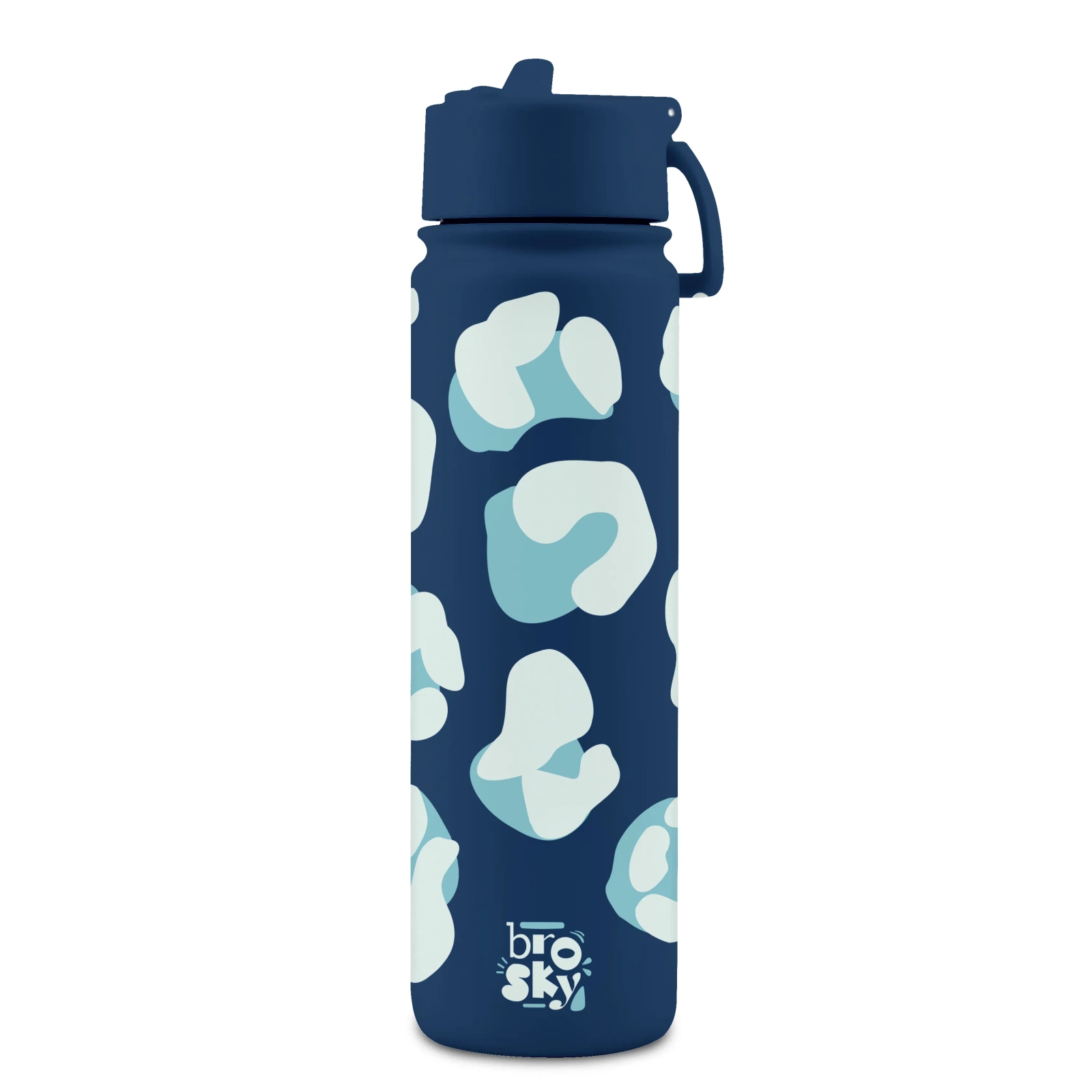 Ciemnoniebieska termiczna butelka na wodę ze słomką Brosky Wild 680 ml