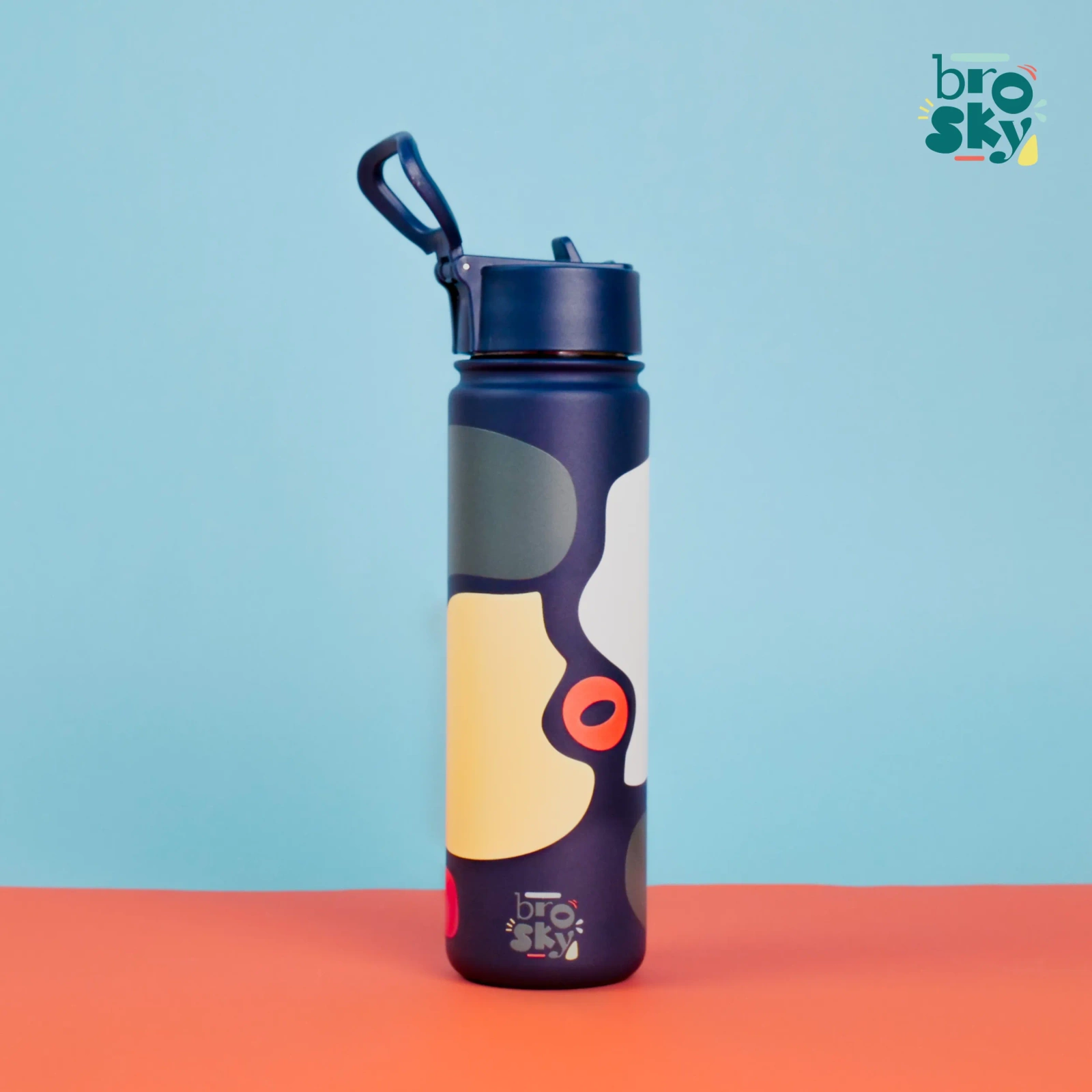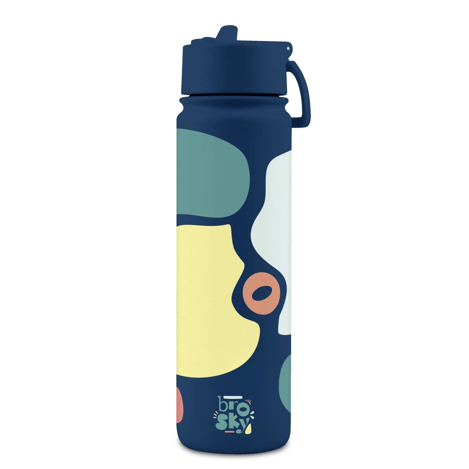 Brosky O. Granatowa metalowa butelka na wodę ze słomką 680 ml