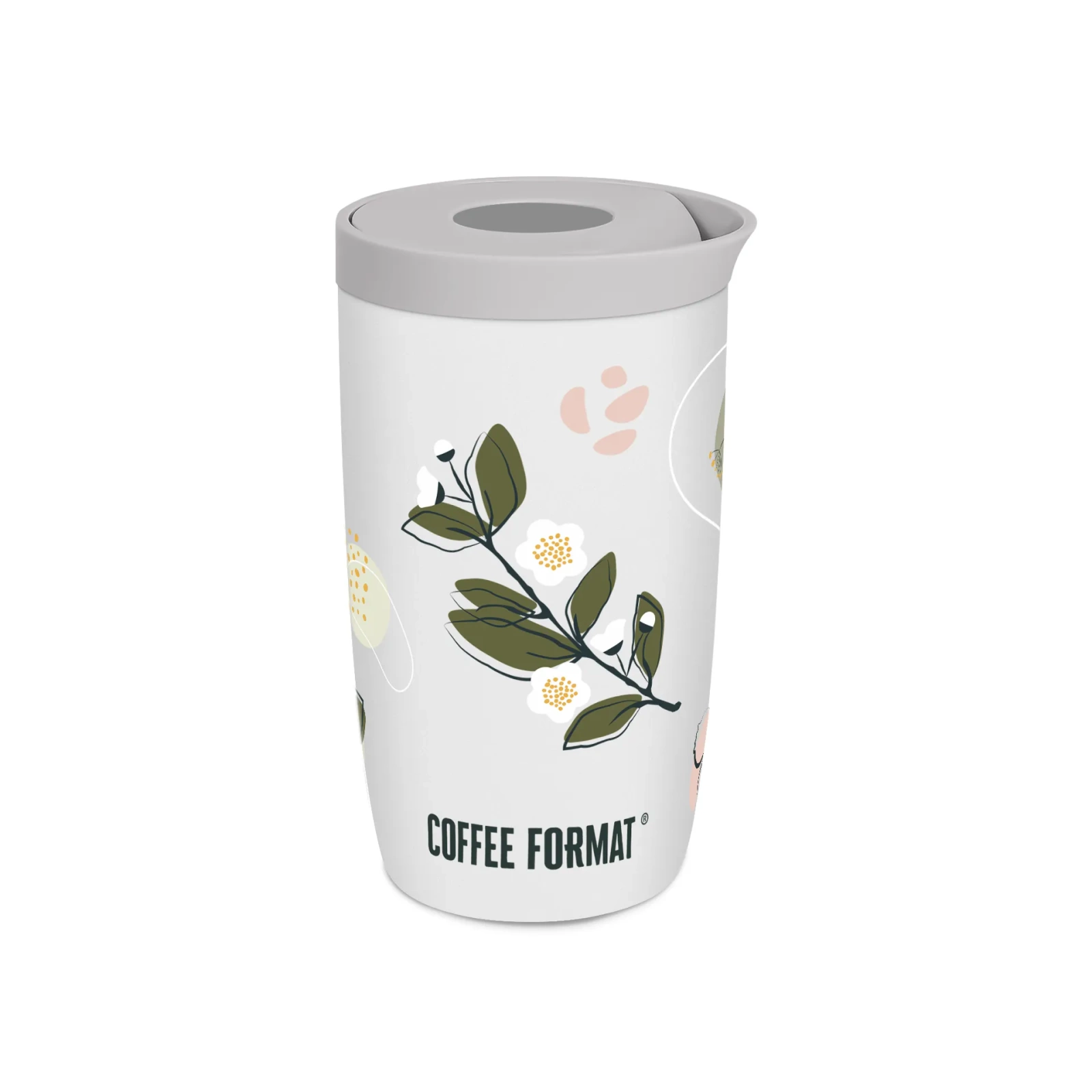 Biały kubek termiczny z motywem roślin i kwiatów o pojemności 350 ml Coffee Format