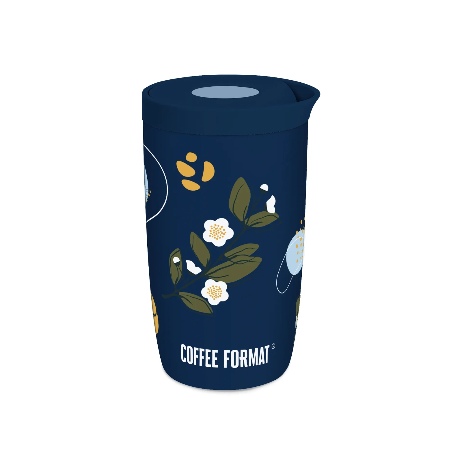 Granatowy kubek termiczny z motywem roślin i kwiatów o pojemności 350 ml Coffee Format