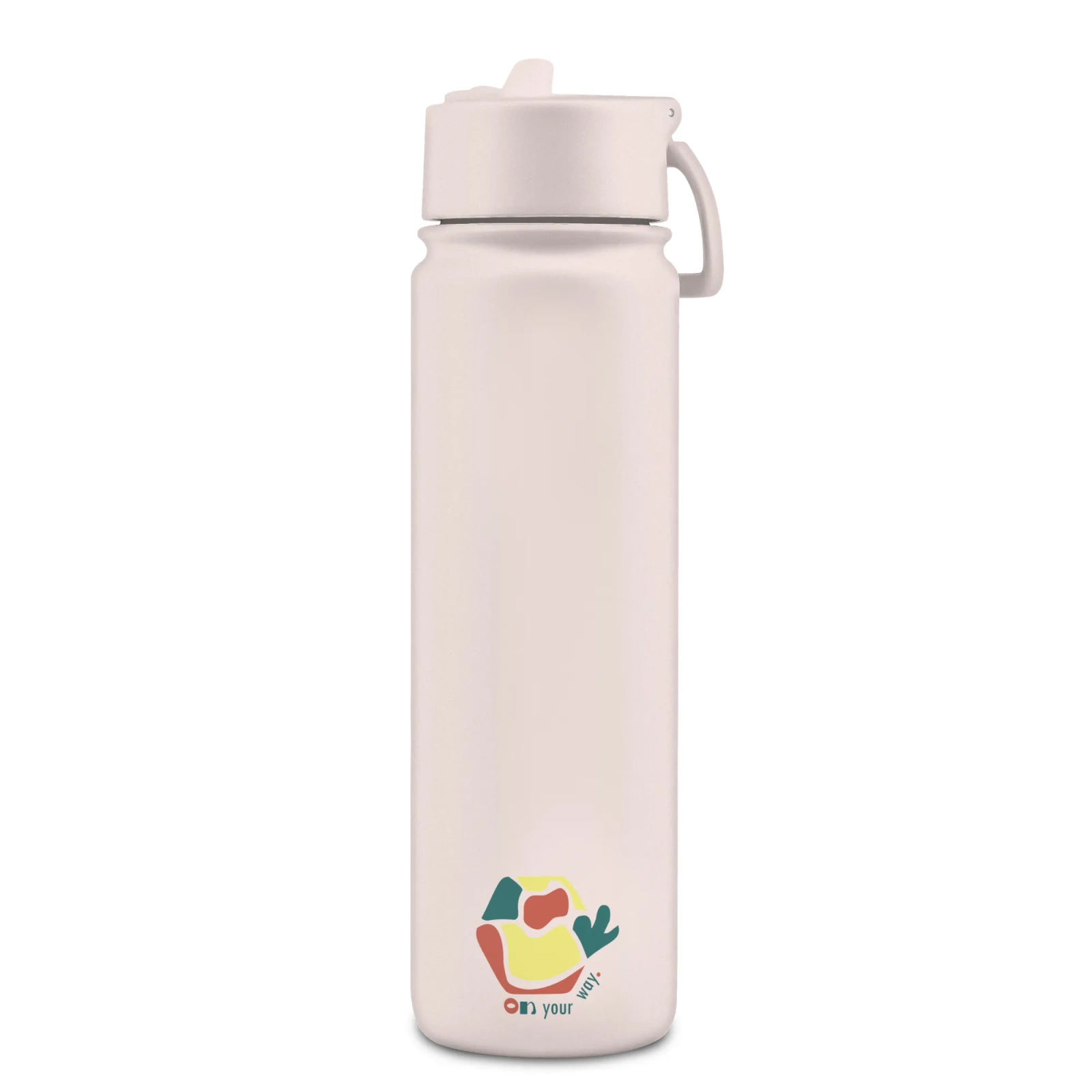 Jestem butelką zaprojektowaną z myślą o praktyczności, wytrzymałości i dobrym wyglądzie. Znajdziesz mnie w 6 kolorach i 3 pojemnościach. Jestem na tyle praktyczna, że można mnie zabrać wszędzie i pasuję na każdą okazję. Moje główne cechy? Wykonano mnie ze stali, a w środku mam ceramiczne wykończenie, dzięki czemu nie zmieniam smaku napojów, ale nie jestem termosem. Lubisz pić wodę? Nie ma sprawy! Lubisz lemoniadę? Nie ma sprawy! Lubisz inne napoje? Dogadamy się! Jeśli chcesz łączyć praktyczność, ekologiczne podejście i styl – miło mi Cię poznać!
