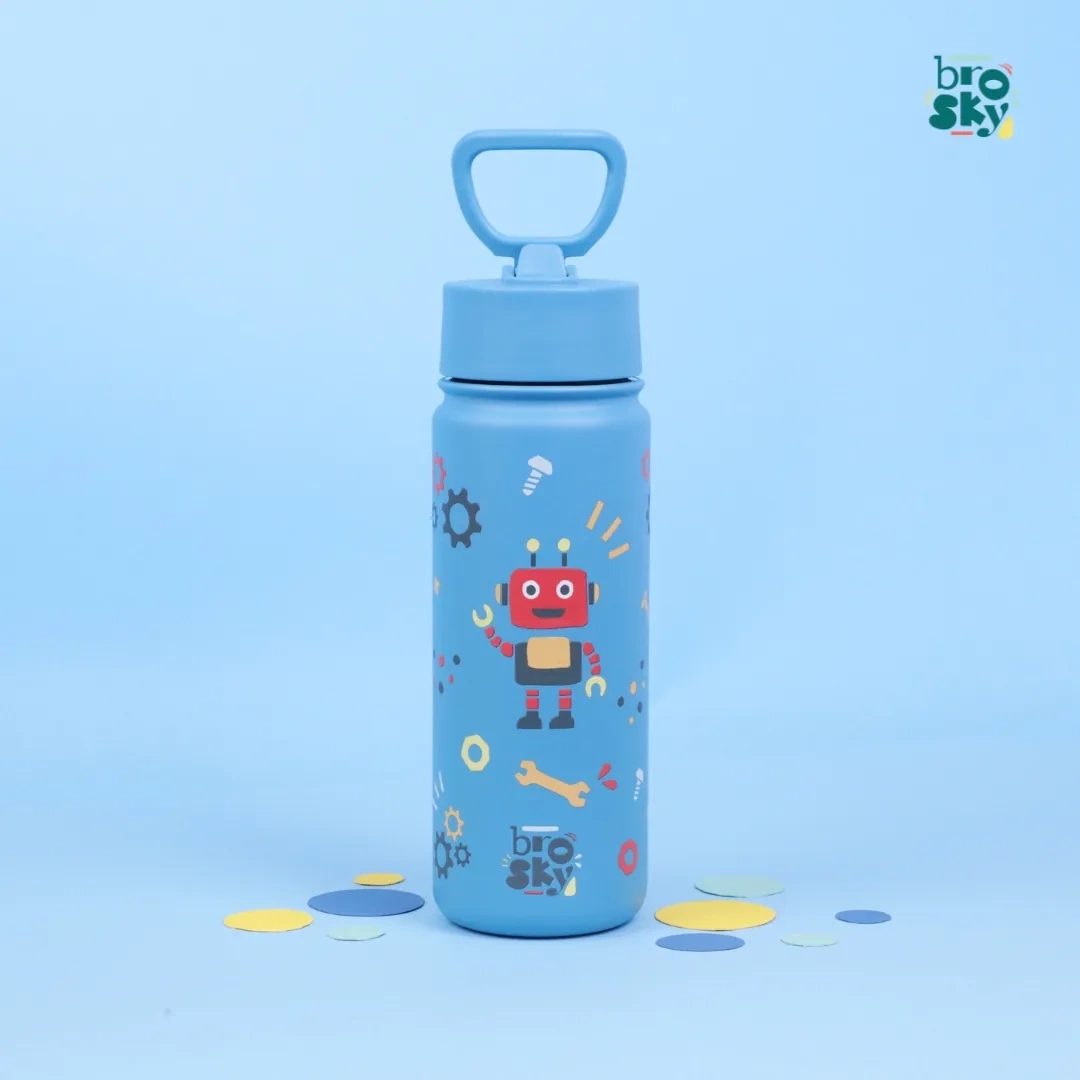 Bidon termiczny dla dzieci Brosky Kids wyróżnia się także pięknymi kolorami oraz motywami uwielbianymi przez najmłodszych! Zwierzątka, roboty, dinozaury, księżniczki! Zachęć dziecko do picia wody w przedszkolu i szkole dzięki kolorowej butelce Brosky!