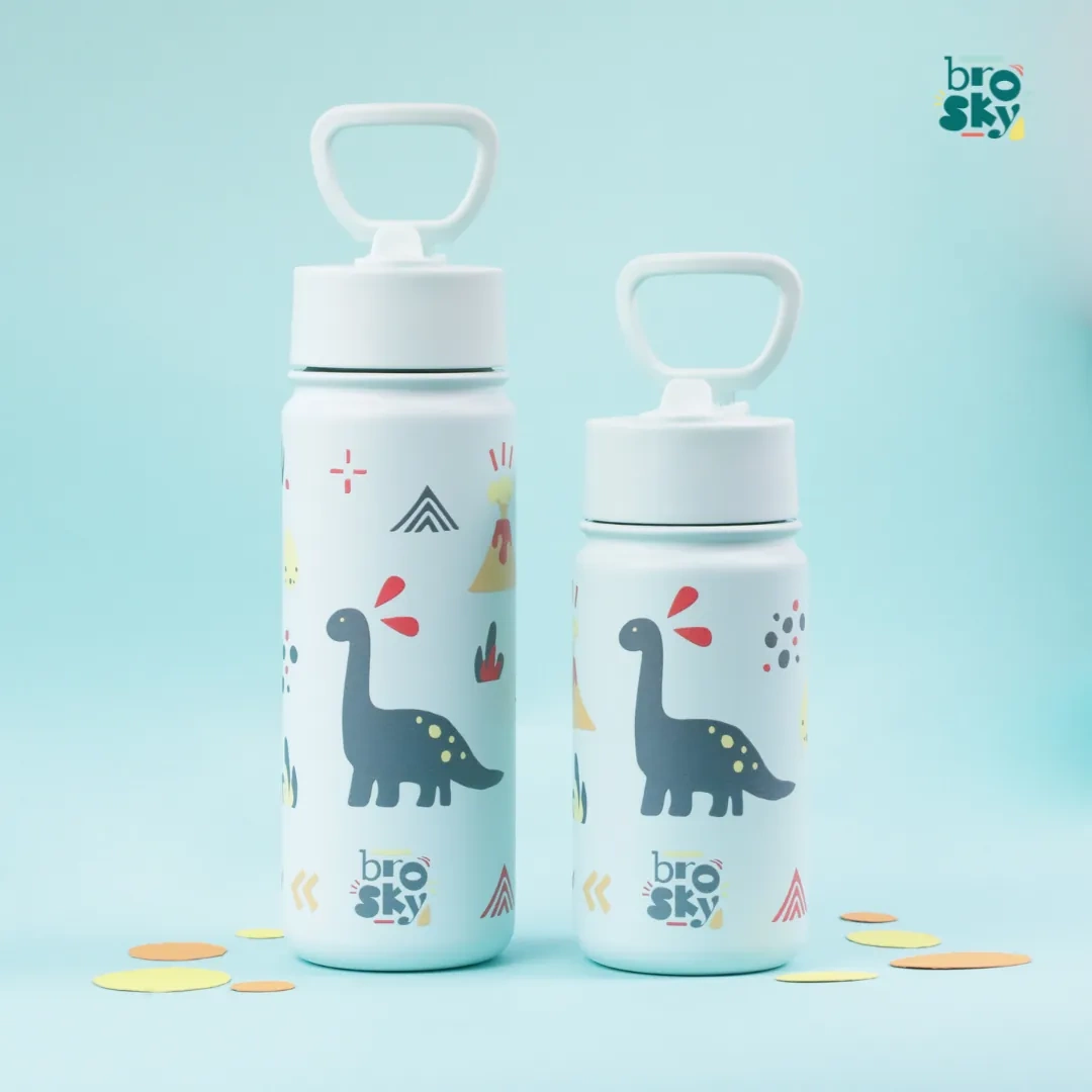 Bidon termiczny dla dzieci Brosky Kids wyróżnia się także pięknymi kolorami oraz motywami uwielbianymi przez najmłodszych! Zwierzątka, roboty, dinozaury, księżniczki! Zachęć dziecko do picia wody w przedszkolu i szkole dzięki kolorowej butelce Brosky!