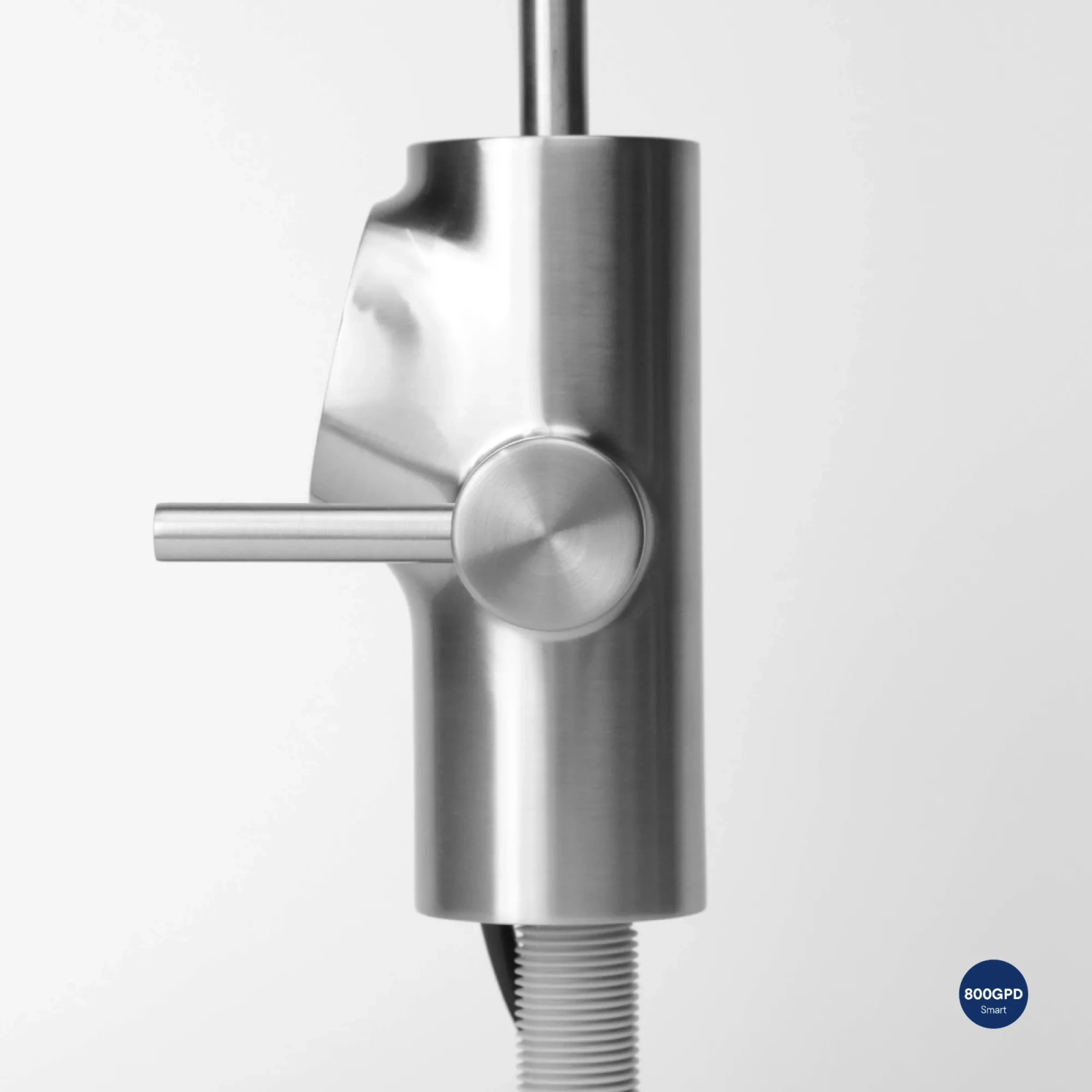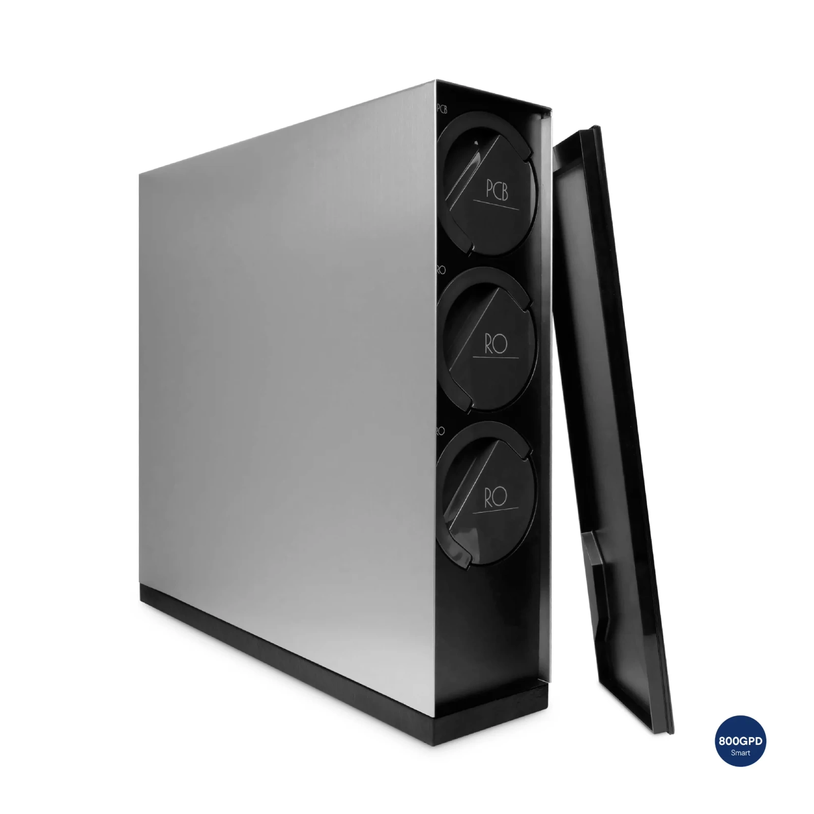 Filtr osmotyczny Midea 800GPD Smart jest nowoczesnym urządzeniem o kompaktowym gabarycie i ogromnych możliwościach filtracyjnych. System wykorzystuje dwie membrany osmotyczne oraz hybrydowy wkład PCB, które zapewniają dokładny proces filtracji gwarantujący idealnie czystą wodę z kranu. Filtr pozbawiony jest zewnętrznego zbiornika wody, a jego konstrukcja została zaprojektowana tak, aby montaż był możliwy nie tylko pod zlewozmywakiem, ale także pod większością szafek kuchennych (w tzw. cokole szafki). Filtr do wody Midea 800GPD Smart wyposażony jest w moduł WiFi, dedykowaną aplikację oraz kranik z wyświetlaczem, które umożliwiają monitorowanie parametrów wody (TDS), stanu wkładów oraz informują o konieczności przeprowadzenia czynności serwisowych.
